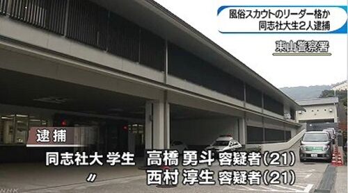同志社大学生も、東の早稲田や慶応と同様、地に落ちたものですね。 風俗あっせん事件 新たに学生2人逮捕 リーダー格か NHK 2019年2月1日 14時07分 京都の大学生らのグループが、若い女性に高額な借金を負わせ風俗店にあっせんしたとして大学生の男らが逮捕…